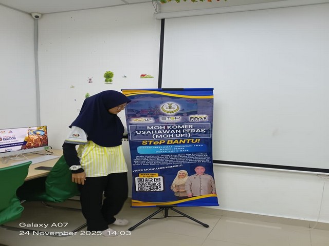 25 November 2025 | Aktiviti TerkiniProgram Moh Kome Usahawan Perak dibawah anjuran Sekretariat Usahawan Negeri Perak (STeP) yang diadakan di NADI Pekan Kubu Gajah. Program ini dijalankan bagi memberi peluang kepada usahawan NADI berkenaan geran-geran yang ditawarkan oleh pihak STeP dan cara-cara mengisi borang permohonan secara online di system STeP. Semoga program ini sedikit sebanyak dapat membantu usahawan NADI Pekan Kubu Gajah untuk memajukan perniagaan mereka.